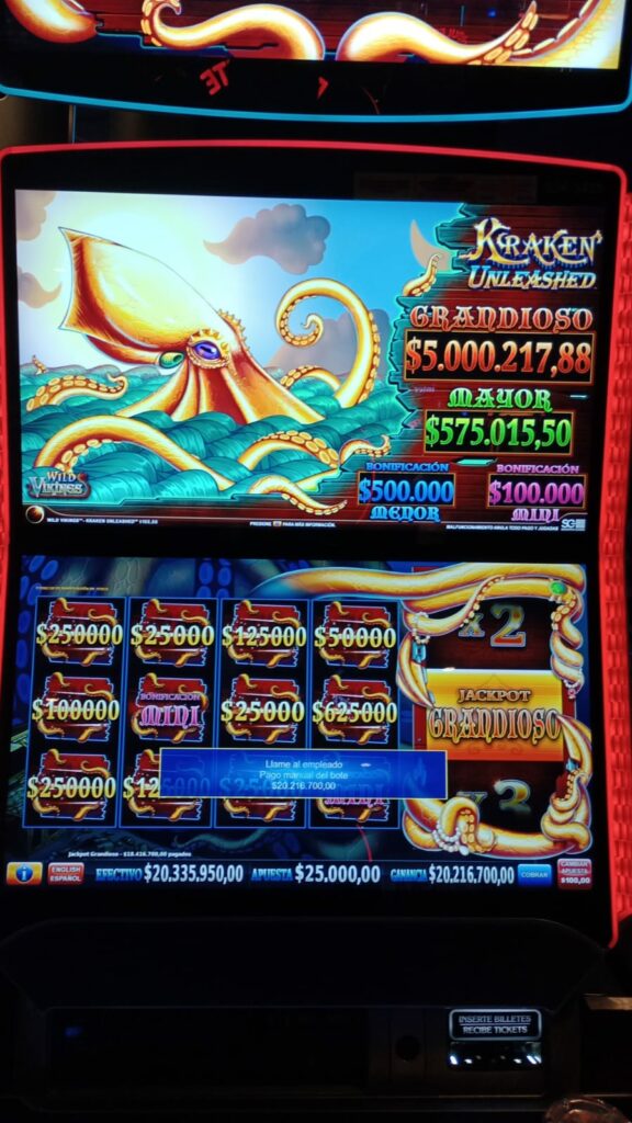 Bingo Oasis Pilar, 19/12 a las 22:39 hs. Una de nuestras clientes decide sentarse en el slot con el pozo millonario más grande de todos, la Kraken Unleashed, para terminar la noche después de haber jugado un rato al bingo (aunque muchos prefieren el juego online, ella sigue eligiendo venir a visitarnos) . Acto seguido, juega un rato y se gana el premio más grande de nuestra historia. Se llevó $20 millones de pesos en un solo tiro ganador. Parece que Papá Noel se puso ansioso y le trajo un premio impresionante a esta afortunada unos días antes de Navidad.